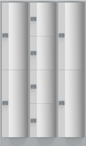 All lockers with attractive base, 100mm high, in color of body and 30 mm height adjustment.